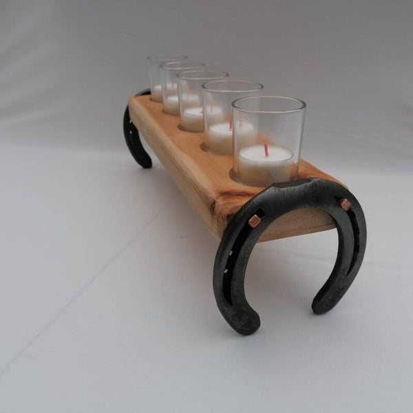 Unieke Vijfvoudige Theelichthouder met Hoefijzers