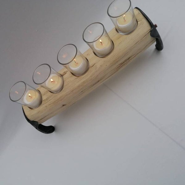 Vijfvoudige Theelichthouder op Boomstam
