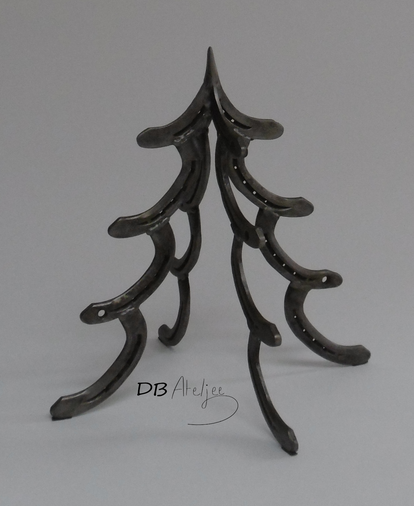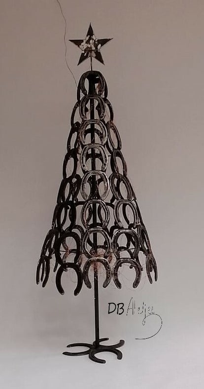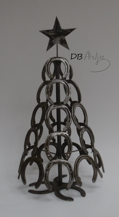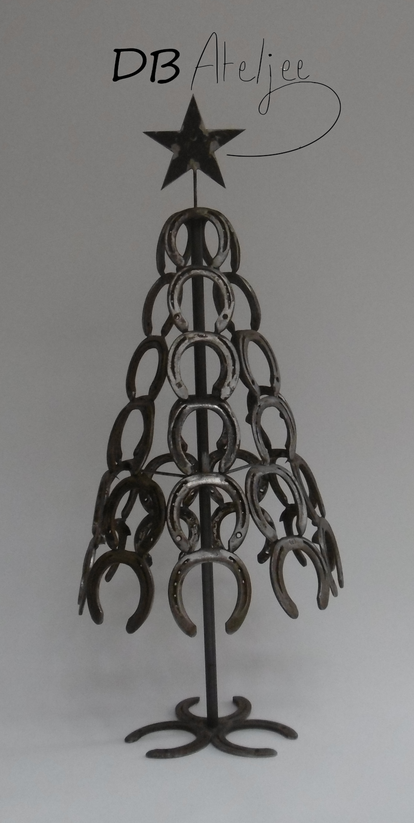Kerstboom middel , van metaal en gerecycleerde hoefijzers.